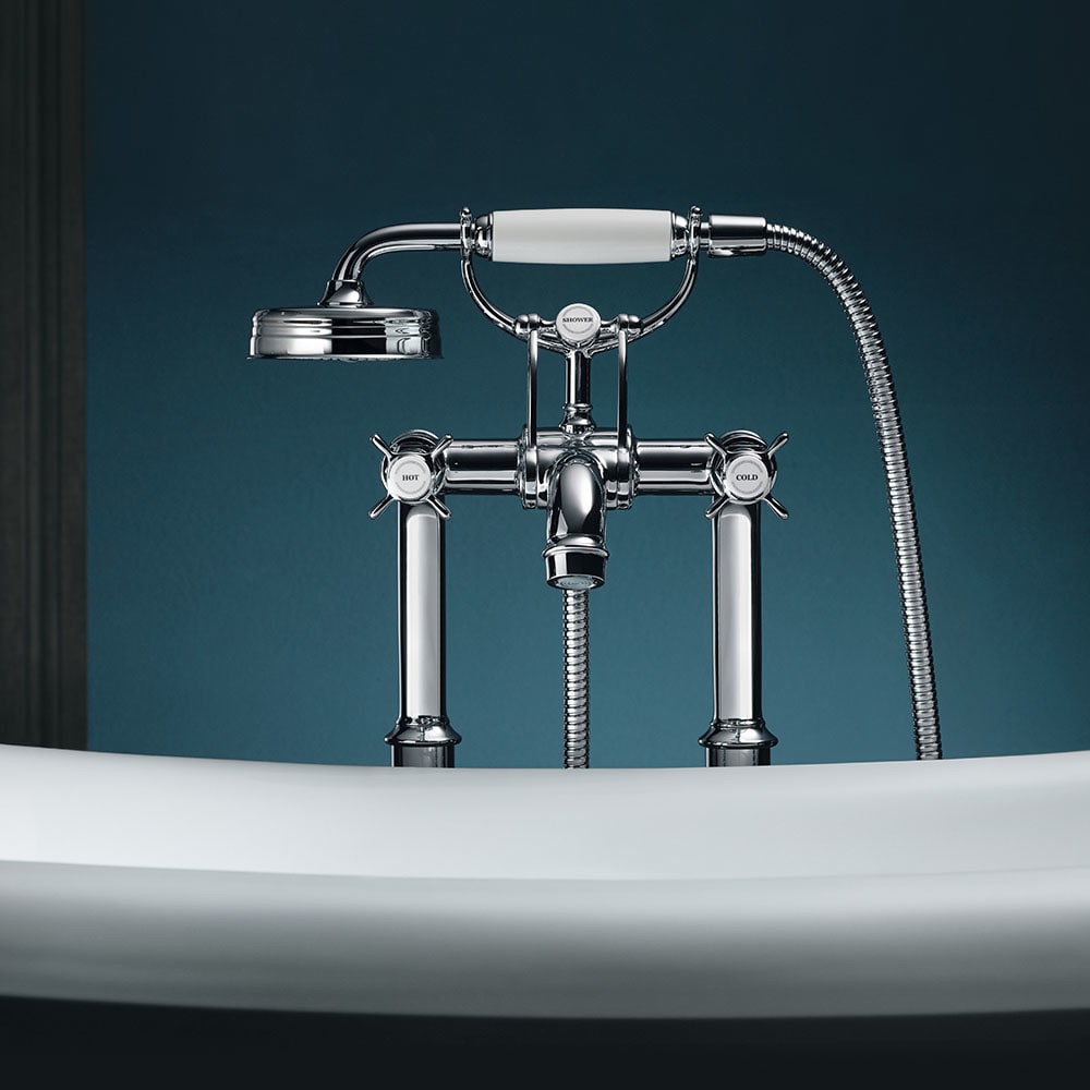 Dette 2-grebs kararmatur fra Hansgrohe Axor Montreux serien er designet til gulvmontering og tilføjer et klassisk touch til dit badeværelse.