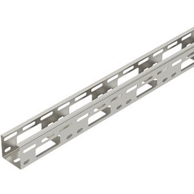 AZ-minikanal med en sidehøjde på 50 mm, udført i rustfrit stål A2. Denne perforerede lillekanal er ideel til en række forskellige installationsformål.