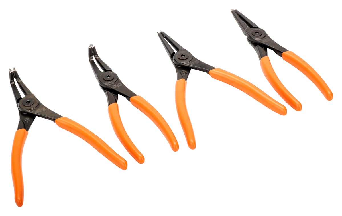 Dette sæt indeholder fire forskellige låseringstænger, der dækker et bredt spektrum af opgaver. Med både indvendige og udvendige tænger, samt lige og 90° kæber, er du godt rustet til at håndtere låseringe i forskellige størrelser og placeringer.
