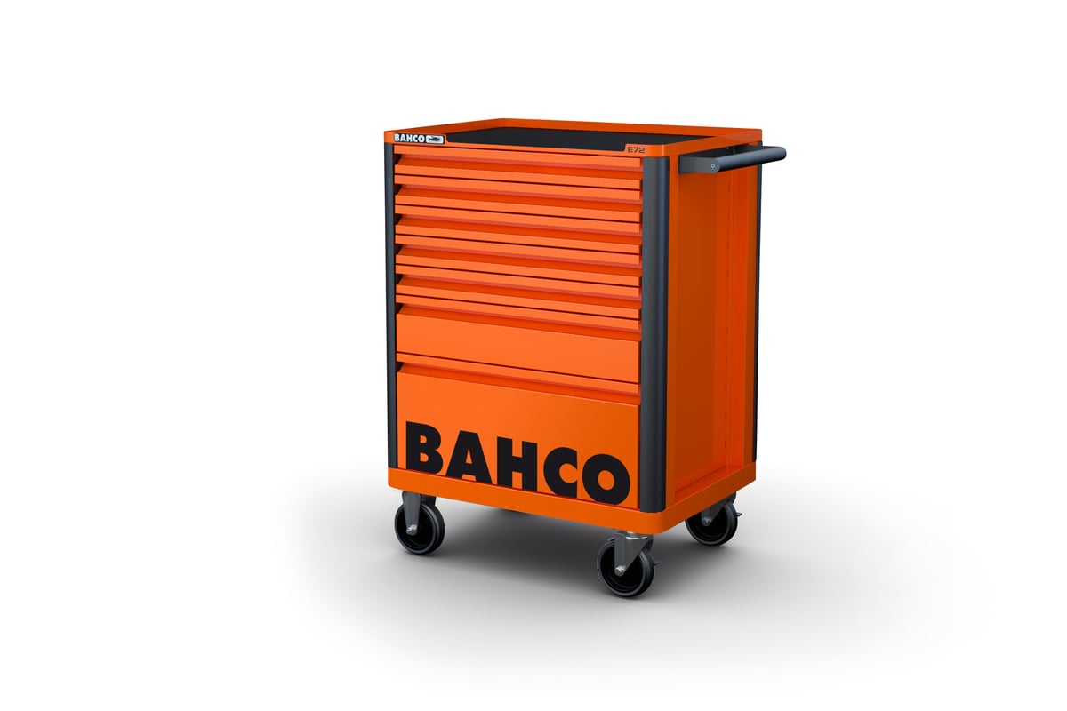 Bahco værktøjsvogn med 7 skuffer i elegant design med afrundede hjørner og stødabsorberende hjørnebeslag. Optimal sikkerhed og mulighed for tilpasning med sidemonteret tilbehør.
