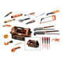 Bahco VVS-SET-2 i åben værktøjstaske for nem adgang. Sættet indeholder alt fra rørtænger og skiftenøgle til skruetrækkere og vaterpas. 100% vandtæt bund.