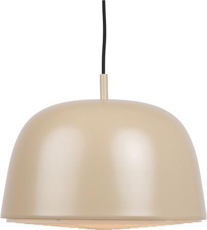 Moderne og stilfuldt pendelarmatur i trendy sandfarve. Med hvid tekstilledning og matchende foldbar baldakin. Rammen er lavet af trykdrejet aluminium og pulverlakeret for en holdbar finish.