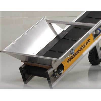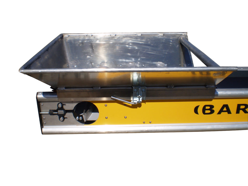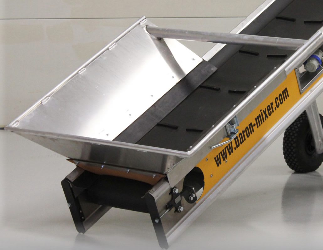 Fødekasse til materialet når det kommer fra et andet transportbånd eller skal skovles op. Fødekassen kan placeres et vilkårligt sted på båndet.