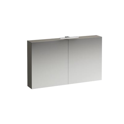 BASE spejlskab med lys og strømudtag (EU), IP44, 1200 x 700 x 185 mm, i lys elm med melamin træstruktur.