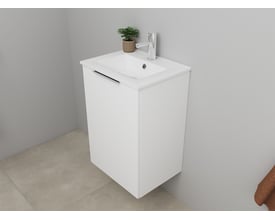 Sanibell Basic Line skab i whiskey eg med softclose-låge og krom greb. Skabet måler 38,5 x 22,5 x 52 cm og passer til håndvaske 786058120 eller 786058220.