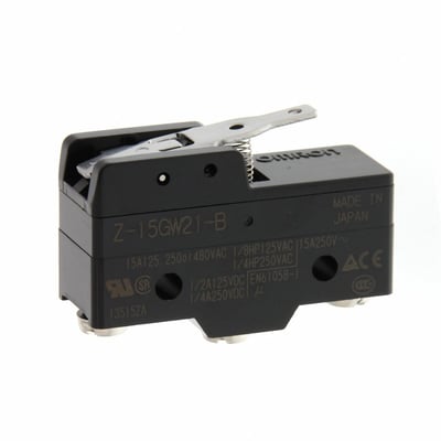 Generel basiskontakt med korte hængsel løftestang, SPDT, 15A. Serie: Industriele schakelaars Z15.