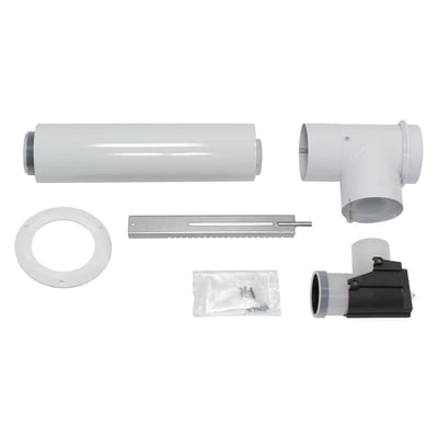 - Til skorstenen (Ø 80/125 mm): 87° T-stykke, spændebånd, 0,5 meter rør og rosette.