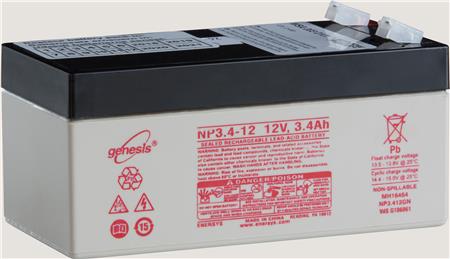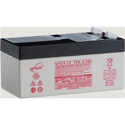 Batteri WSA 003 0101 til brandcentral WSC204. 12V/3,4Ah, mål 134x68x67 mm.