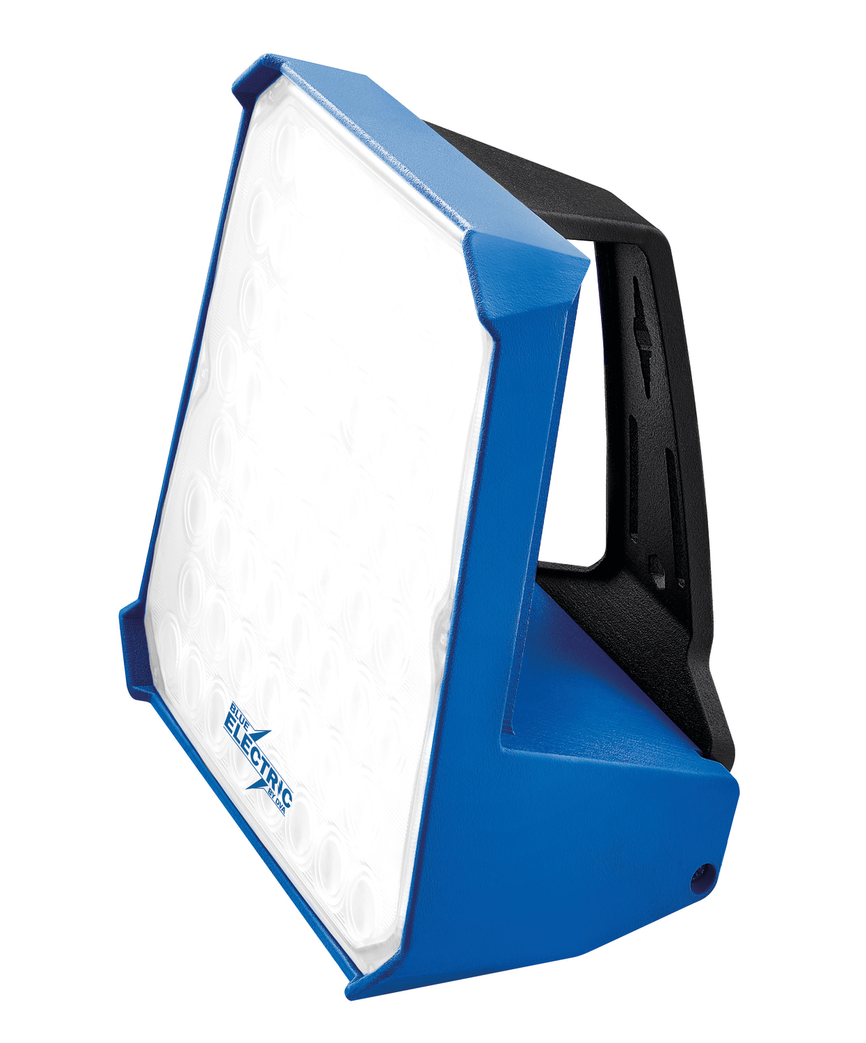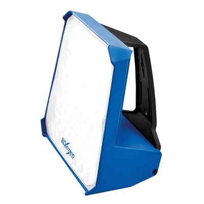 Blue Electric +Plus-Line arbejdslampe i slagfast plast med diffuser. Med 5 m kabel med DK-jordstik. Til indendørs og udendørs brug. Kan stilles, hænges eller monteres på stativ.