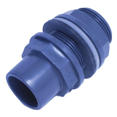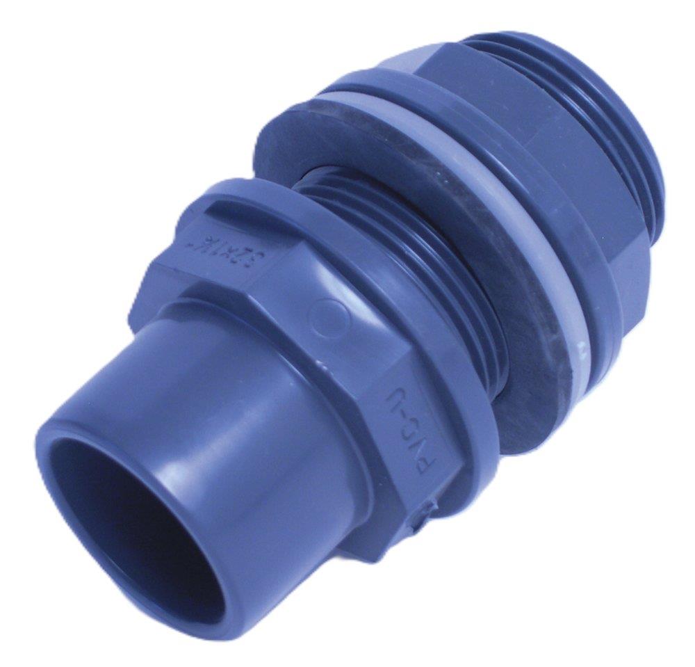 PVC tankgennemføring med 1 1/4" gevind og 40mm rørdimension. Inkluderer EPDM fladpakning/PP tætningsring.
