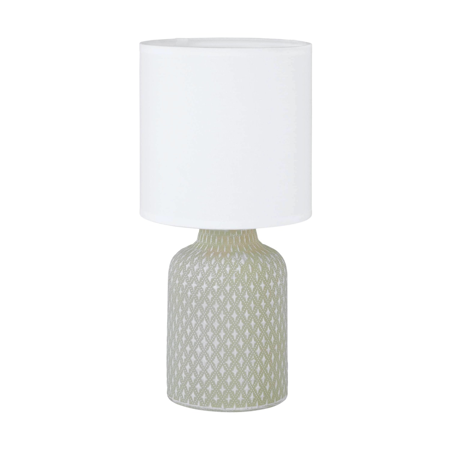 EGLO Bellariva bordlampe i grå-hvid keramik med hvid tekstilskærm. E14, max 40W, Ø15 cm, H 35 cm. Ekskl. lyskilde.