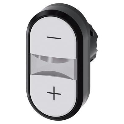 Belyst dobbelttrykknap med flade tryknapper, 22 mm, rund plastik i hvid/hvid.