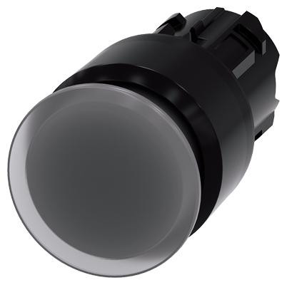 Belyst paddehattetryk, 22 mm, rund, plastik, klar, 30 mm, låsende med træk-til-låsemekanisme.