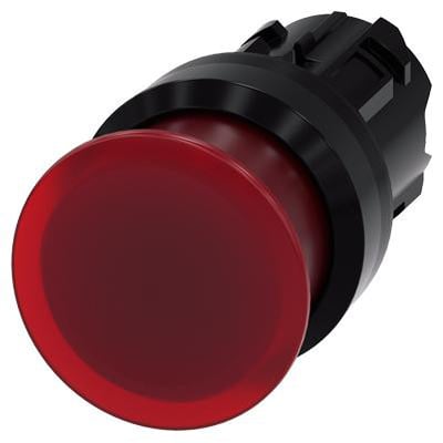 Belyst paddehattetryk, 22 mm, rund, plastik, rød, 30 mm, med momentan kontakt type.