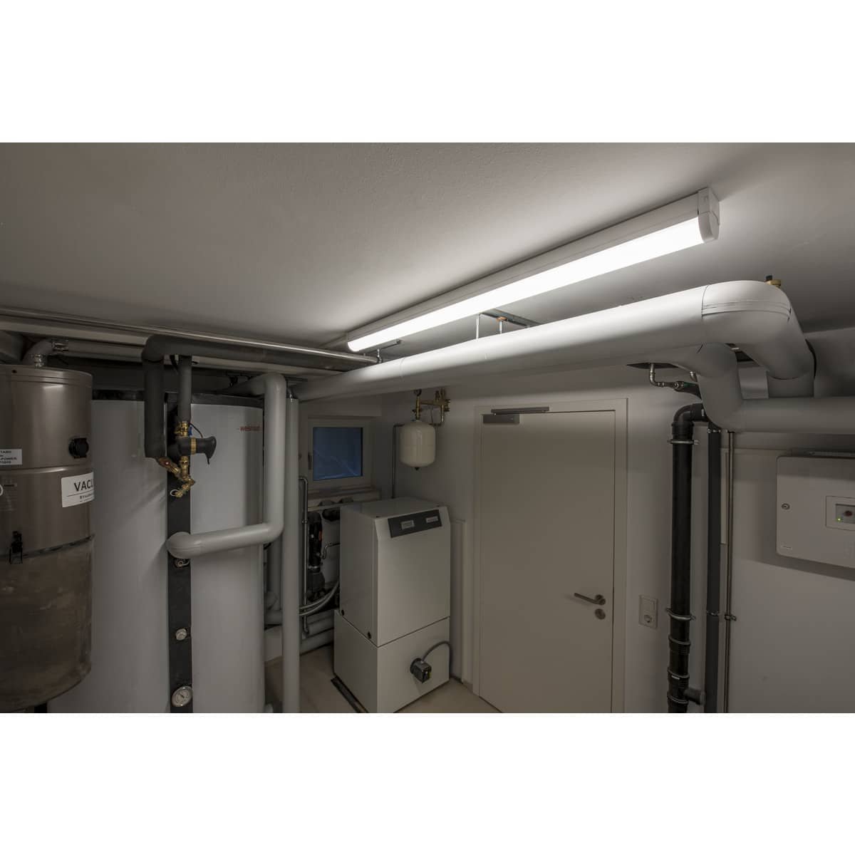 Elegant og moderne loftslampe med LED-teknologi. Giver et klart lys på 4000 K i en neutral hvid farve. Mål: 150 x 6.5 x 7.4 cm.