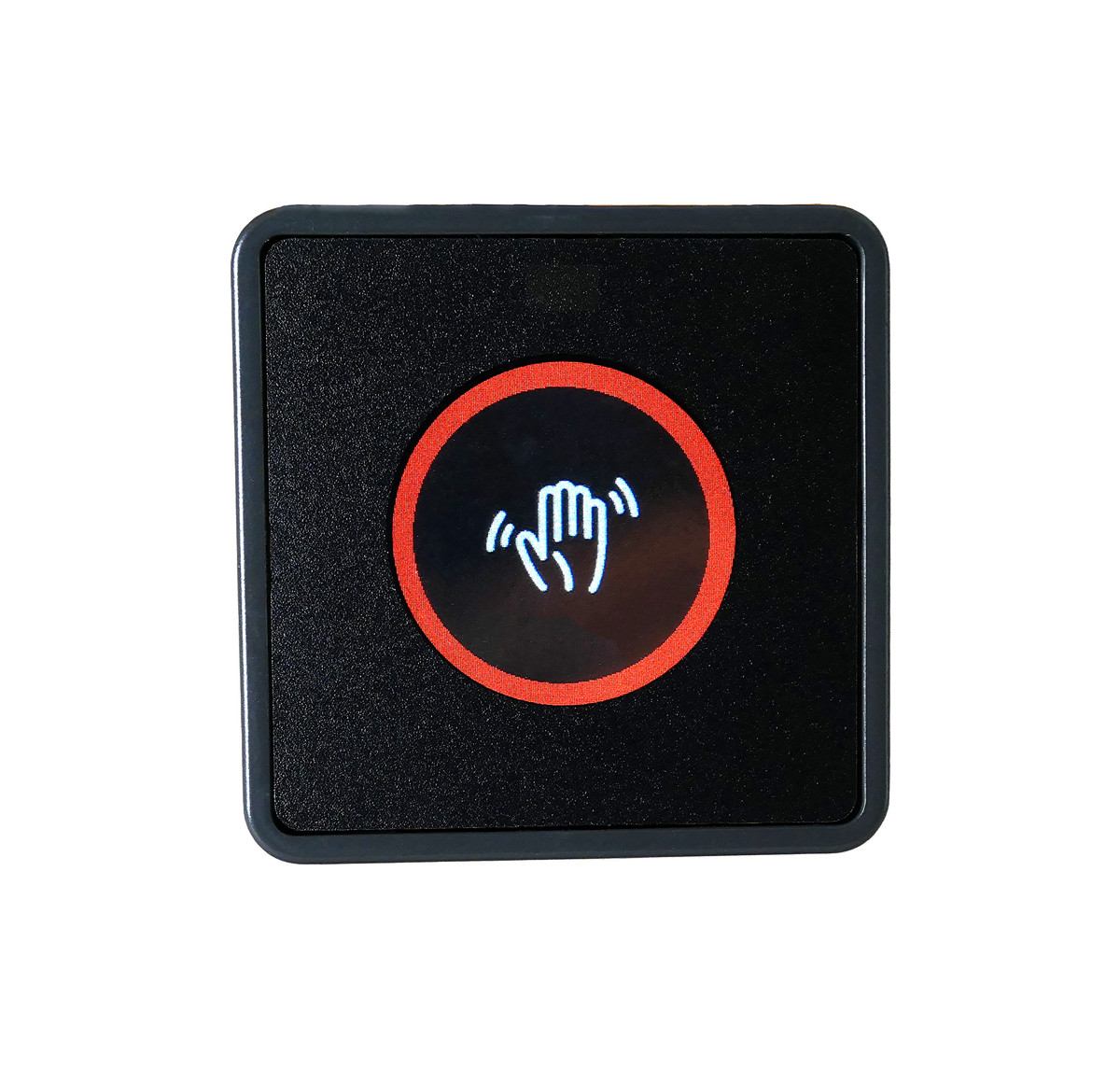 Berøringsfri WAVE XS i sort fra Conlan. Justerbar afstand, aktiveringstid og mulighed for at vælge tekst/symboler eller indsætte eget billede via software.