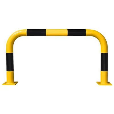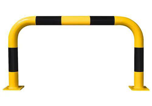 Stålbeskyttelsessystem (3 mm godstykkelse) til sikring og afgrænsning af områder. Med påsvejset bundplade til gulvmontering. Til indendørs brug. Gul med sorte signalstriber.