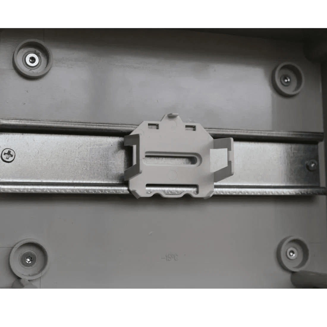 Dette beslag er designet specifikt til montering af Unidim eller Boxrelay enheder på en standard DIN-skinne. Det sikrer en stabil og sikker fastgørelse i eltavler eller styreskabe.
