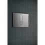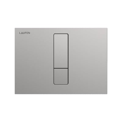 Elegant betjeningsplade i børstet rustfrit stål med kromdetaljer. Mekanisk dobbeltskyl og fleksibel kabeltilslutning. Passer til flere Laufen modeller.
