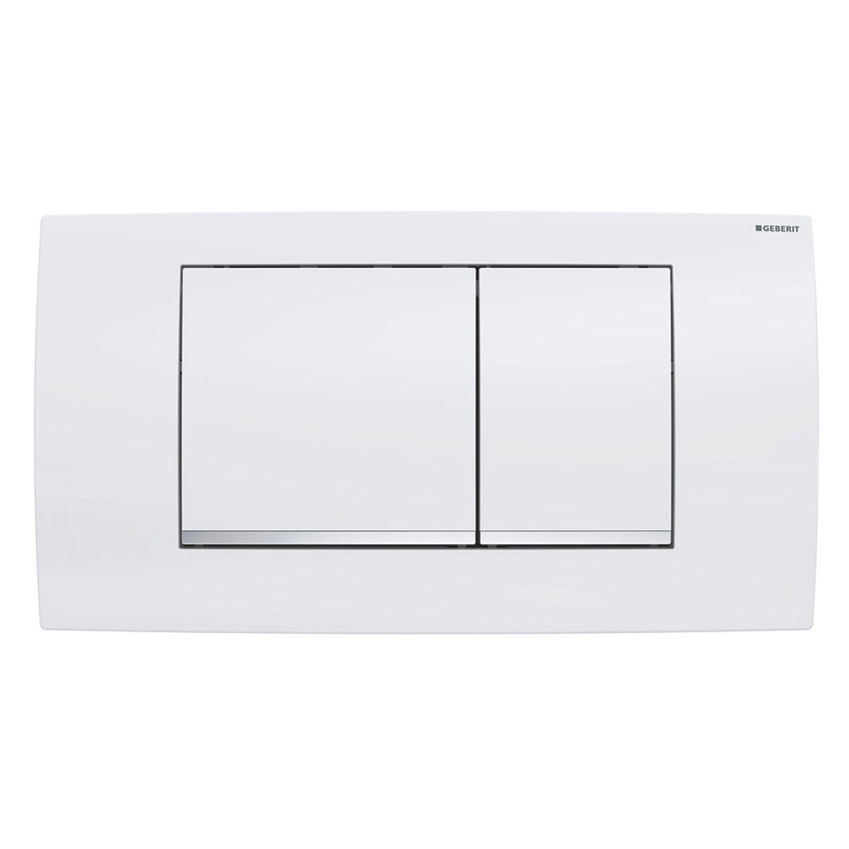 Geberit Twinline30 betjeningsplade til dobbeltskyl. Plade og knapper: hvid, designstriber: blankforkromet.