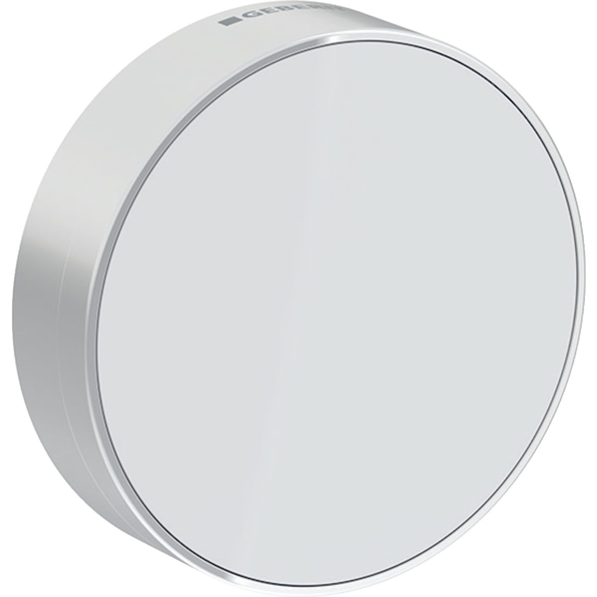 Geberit betjeningsroset Split til excenter-garniture til badekar, udført i hvid/blankforkromet design.