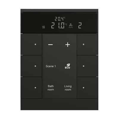 ABB Tenton SBR/U6.0.1-885 betjeningselement med RTC til varmestyring, indbygget temperatursensor og 3/6 tryk for betjening i mat sort.