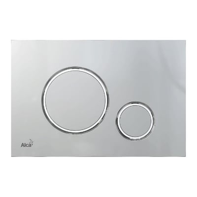ALCA M772 thin betjeningsplade i krom mat/krom blank (ringe) plast, med rundt tryk og dobbeltskyl.