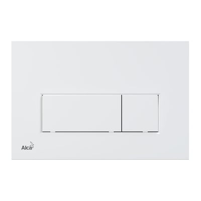 Denne Alca M576 betjeningsplade er udført i et stilrent, minimalistisk design i mat hvid plast. Den er udstyret med et firkantet tryk og dobbeltskyl funktion, som giver dig mulighed for at spare vand.