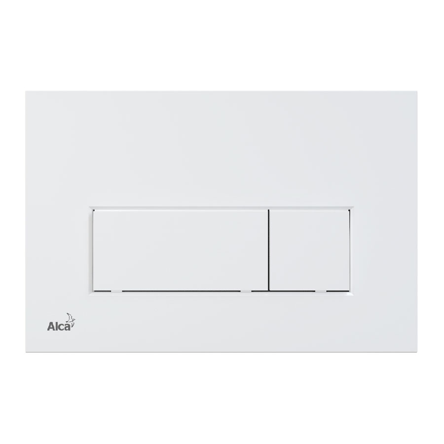 ALCA M576 thin betjeningsplade i mat hvid plast med firkantet tryk og dobbeltskyl.