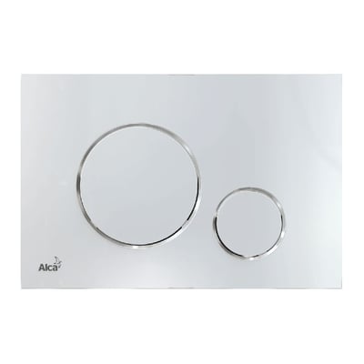 ALCA M671 thin betjeningsplade i blank krom plast er en stilren og funktionel løsning til dit badeværelse. Med sit elegante design og dobbeltskylsfunktion kombinerer den æstetik og vandbesparelse.