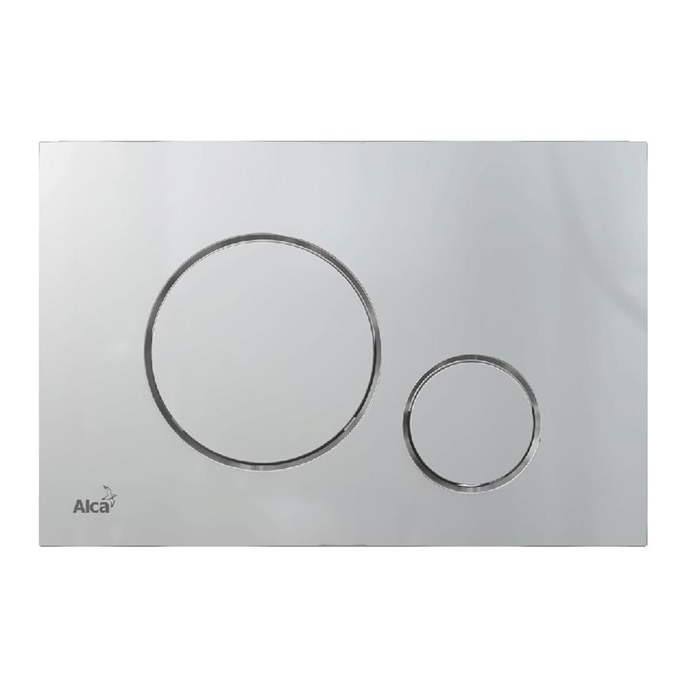 Elegant Alca M672 betjeningsplade i mat krom plast. Denne model er designet med et rundt tryk og tilbyder dobbeltskyl funktion.