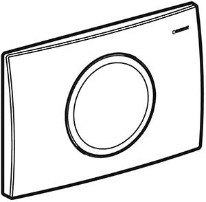 Geberit Delta11 betjeningsplade i hvid kunststof til frontbetjening. Bruges til skyllestyring på Delta indbygningscisterner.