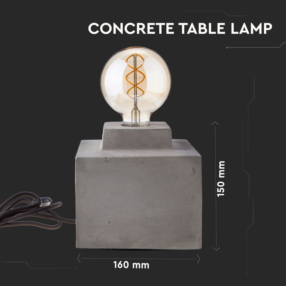 Denne elegante bordlampe, VT-7160, er fremstillet i et moderne betonlook, der tilføjer et unikt og stilfuldt præg til enhver indretning. Med en diameter på 160 mm passer den perfekt på borde, skriveborde eller hylder, hvor den både fungerer som et dekorativt element og en funktionel lyskilde.