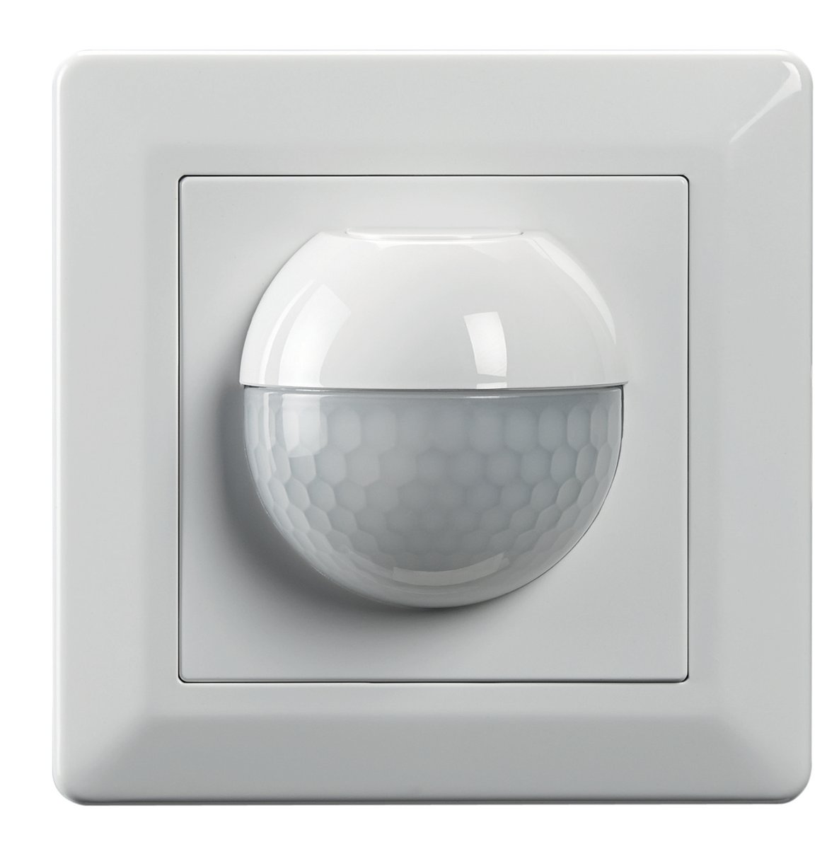 PIR bevægelsessensor med 180° detekteringsvinkel. Planforsænket til vægmontering, IP40, 230V AC (EURO).