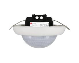 Med en IP-klasse på 54 er sensoren beskyttet mod støv og vandstænk, hvilket gør den velegnet til udendørs brug. Den anbefalede monteringshøjde er 2,5 meter, og den frontale rækkevidde er op til 6 meter. Fabriksindstillingerne er 3 minutters efterløbstid og 20 lux, men yderligere funktioner kan nemt indstilles via en separat fjernbetjening (tilbehør).