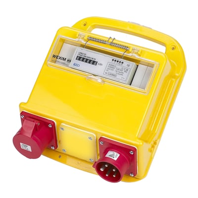 Bi-målertavle til direkte måling af kW forbrug. Ideel til skurvogne, varmeblæsere, værktøj og maskiner. Med 5P 400V 32A CEE ind- og udtag.