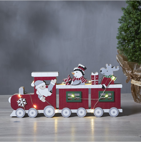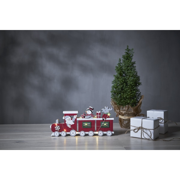 Flot juletog til nisselandskabet eller skænken. LED-lys drevet af 2x AAA batterier (medfølger ikke) med indbygget 6/18 timers timer.