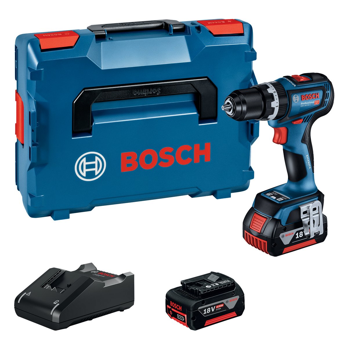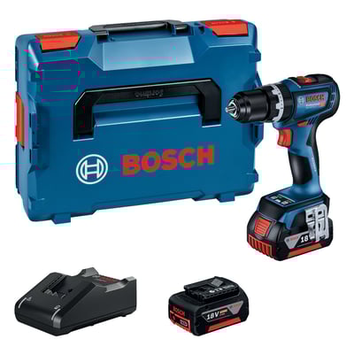 Kraftfuld og alsidig 18V slagboremaskine fra Bosch med 2 x 4,0 Ah batterier og L-Boxx. Ideel til krævende bore- og skrueopgaver.