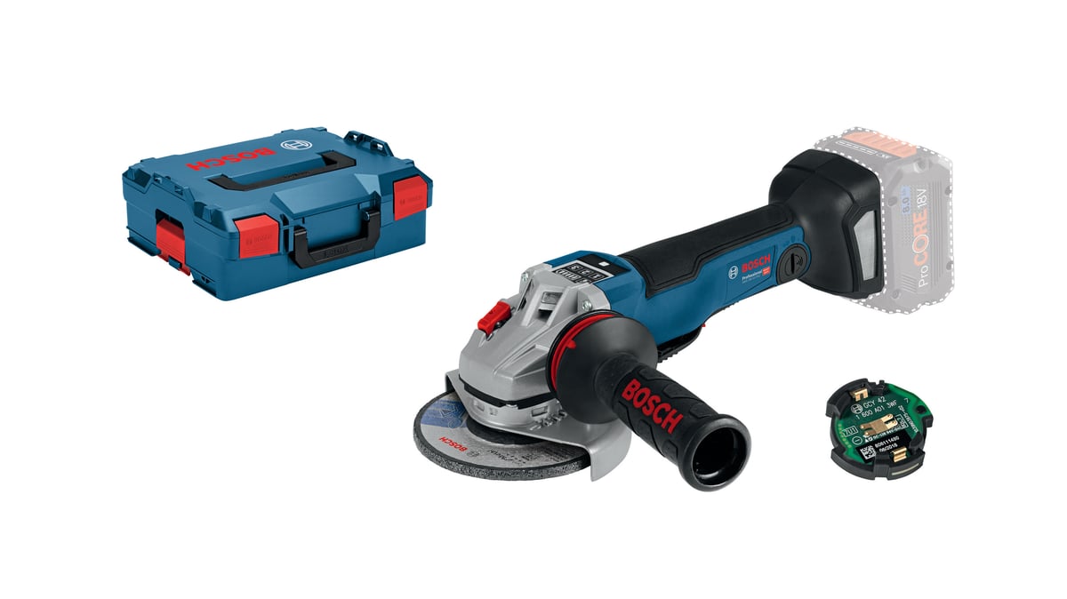 18V akku vinkelsliber med X-LOCK. Ydelse som en ledningsdrevet 1.000 W model. Børsteløs EC-motor, ProCORE18V-akku, PROtection switch, KickBack Control og Bluetooth-modul.