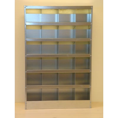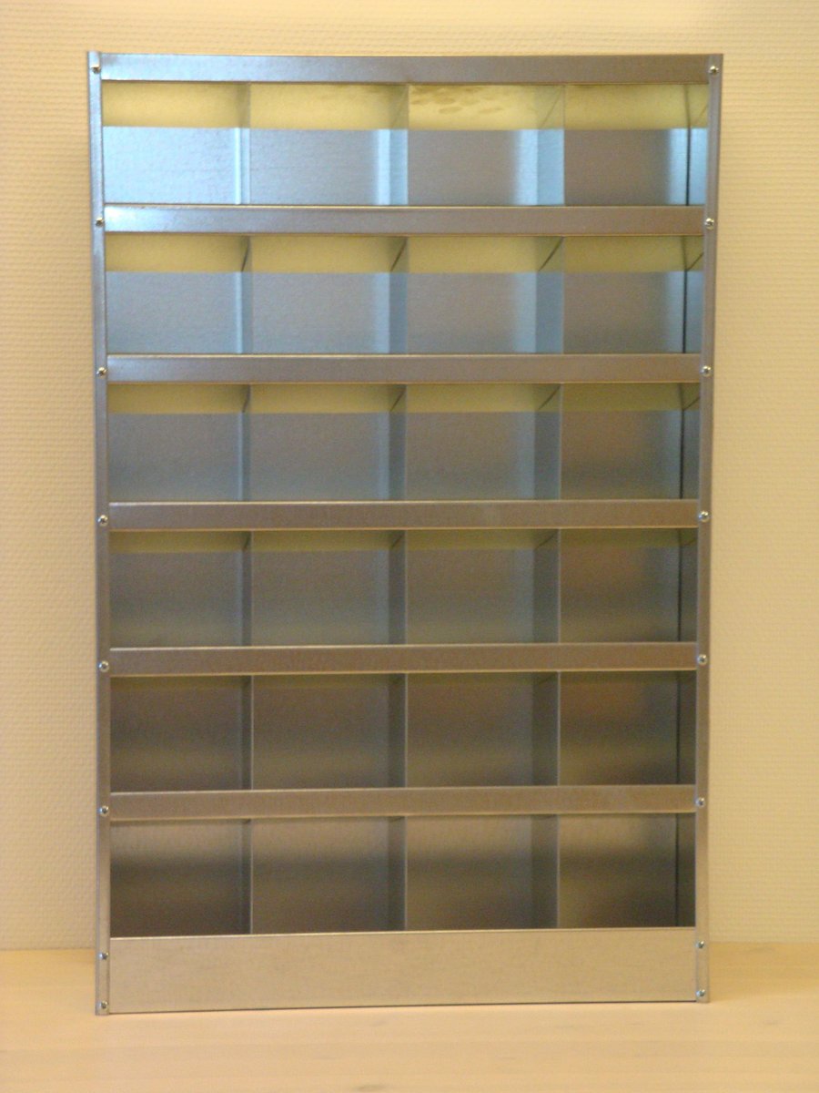 Boltereol fra Blackbolt med 28 rum. Fremstillet i stål. Udvendige mål: 500x770 mm. Rum bredde: 125mm.