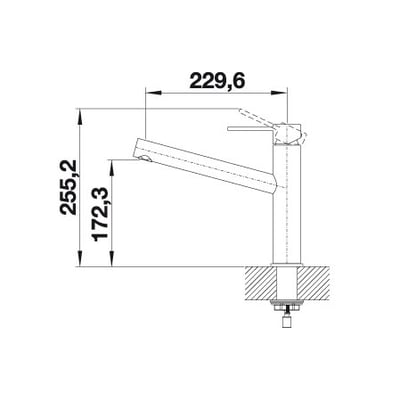BLANCO AMBIS køkkenarmatur i rustfrit stål med 1-grebs betjening og en højde på 230 mm, designet til bord-/vaskmontering.