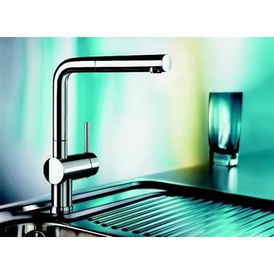 Blanco Linus-S køkkenarmatur i messing med udtrækstud og 1-grebs betjening. Svingbar med koldstart.
