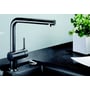 Dette Blanco Linus-S køkkenarmatur kombinerer funktionalitet med et stilrent design. Armaturet er udført i holdbart messing med en lakeret overflade i en dyb brun farve. Det er designet til montering på bord eller vask og har en praktisk udtrækstud, der letter opgaver i køkkenet.