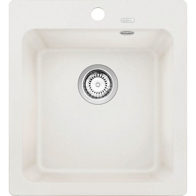 BLANCO NAYA 45 UX køkkenvask i Silgranit® hvid. Mål: 46,5 x 51 cm. Til nedfældning i 45 cm skabsbredde. Med manuel kurveventil og hanehul.