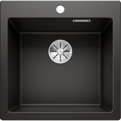 BLANCO PLEON 5 UXI køkkenvask i SILGRANIT® sort. Mål: 51,5x51 cm. Til nedfældning i 60 cm skab. Med manuel afløbsbetjening og InFino® afløbssystem. Forboret til hanehul.