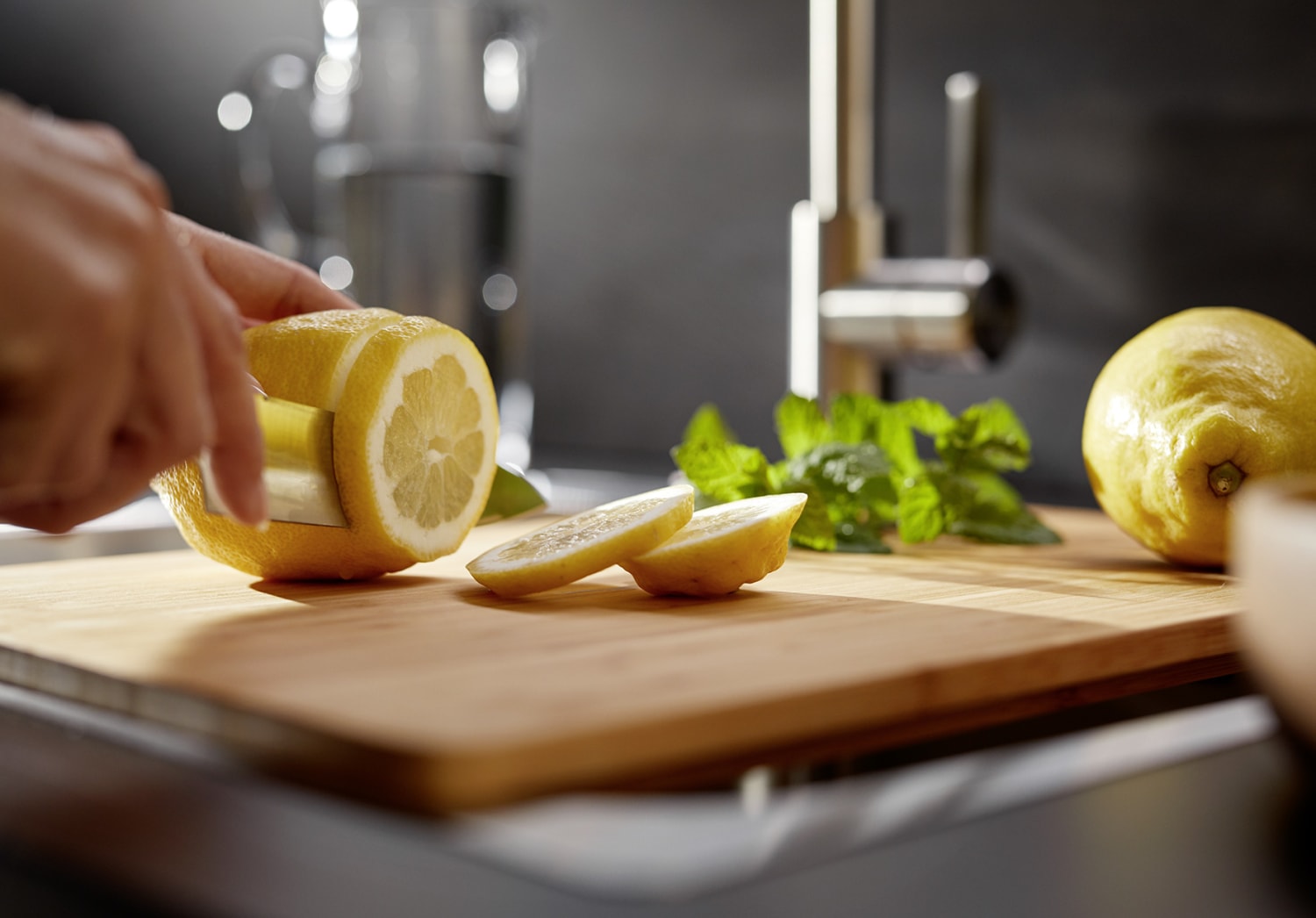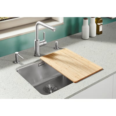 Elegant skærebræt fra BLANCO i bambus. Mål: 424 x 280 mm. Farve: Eg.