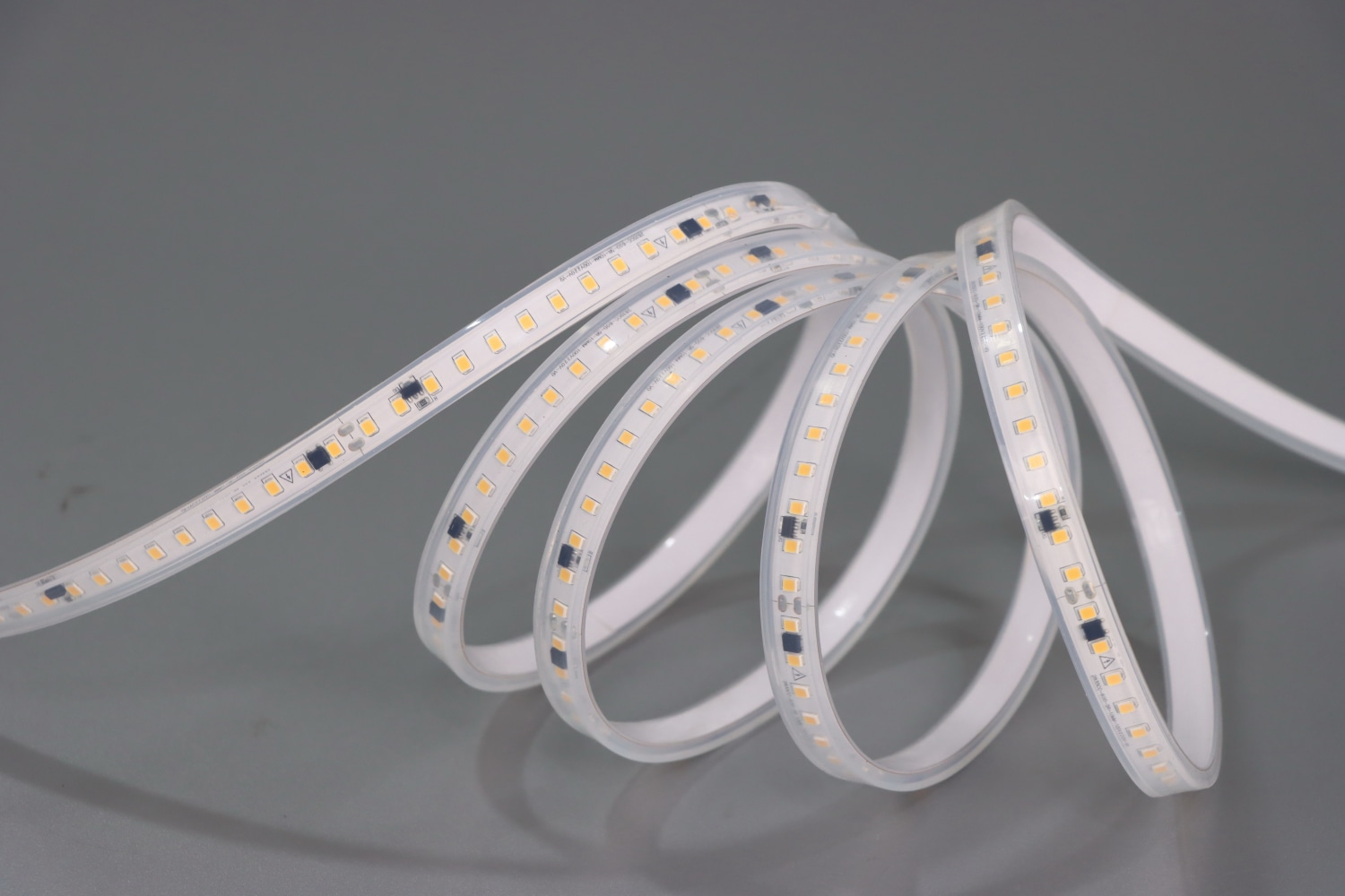 Højkvalitets 230V LED strip til effektbelysning, hvor kvalitet og udseende prioriteres. Fås i forskellige watt-tal og længder, med mulighed for klipning hver 10 cm.