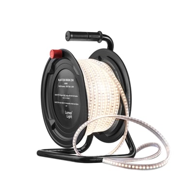 BLAST230 LED strip på 25 meter med 4000K hvidt lys og 4 meter tilslutningskabel. Perfekt til nem transport og installation.