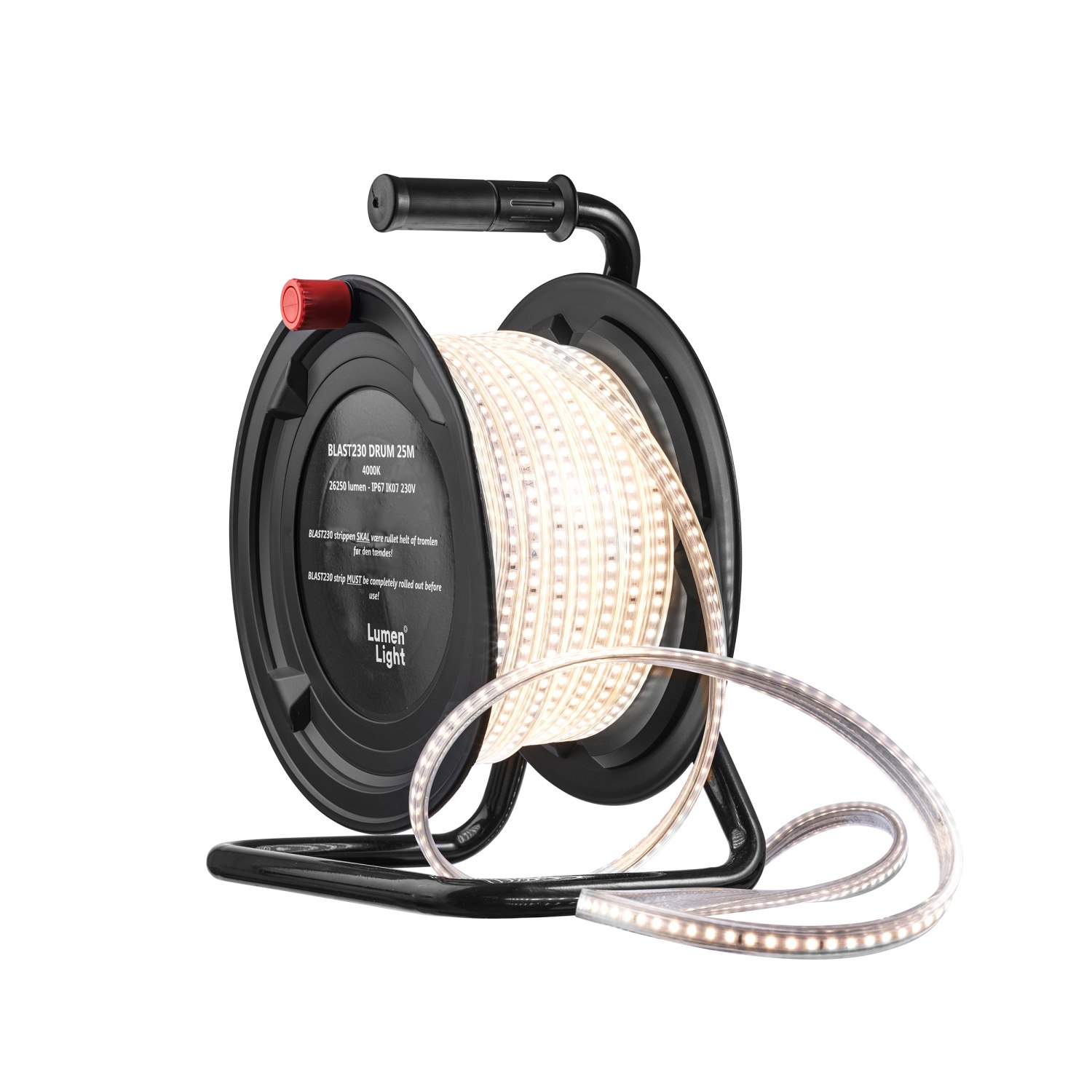 BLAST230 LED strippen er en komplet løsning, der leveres på en 25 meter tromle, hvilket gør den nem at transportere og installere. Med en lysfarve på 4000K producerer den et klart hvidt lys, der er velegnet til en bred vifte af applikationer.