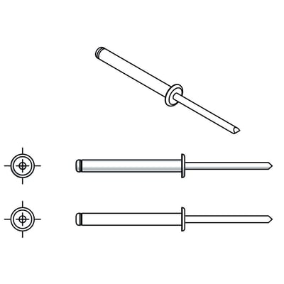 Blindnitte, åben, 3,2 x 14 mm, fremstillet i AL/ST og overholder DIN 15977 standarden. Leveres i pakke med 500 stk.
